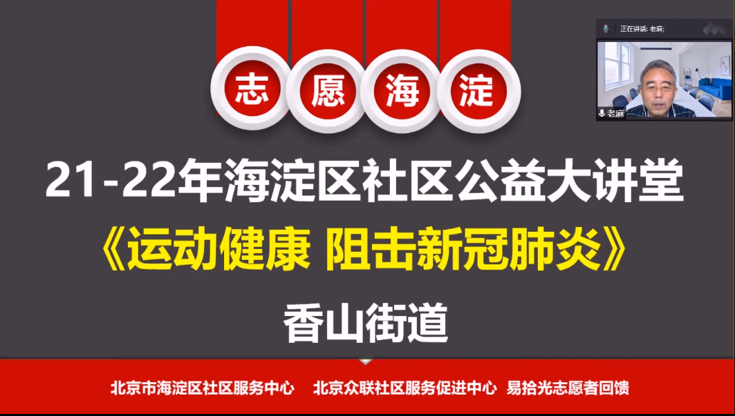 海淀社区公益大讲堂线上培训走进... 海淀社区公益大讲堂线上培训走进香山街道,近期为居干和社区志愿者们开展了《志愿服务 幸...
