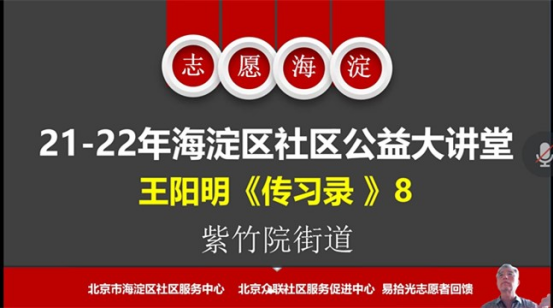 海淀区紫竹院街道、香山街道、青... 海淀社区公益大讲堂为社区志愿者赋能,在紫竹院街道、香山街道开展了王阳...