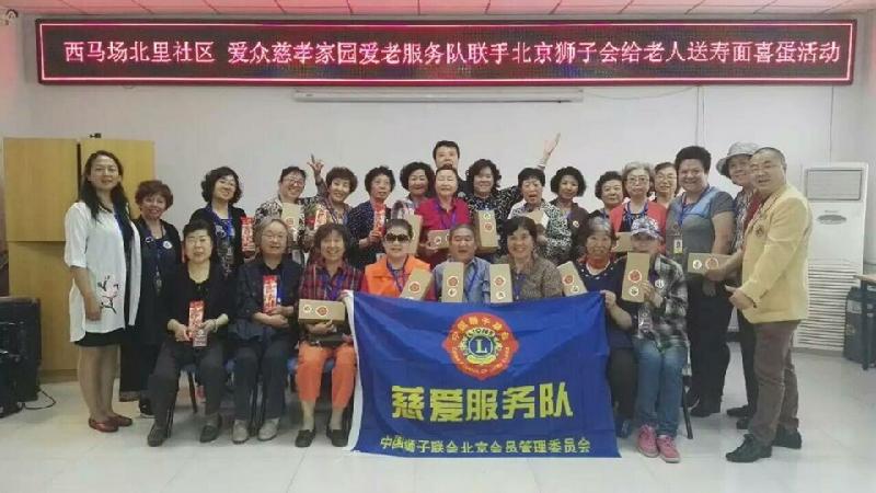 7月27日北京爱众慈孝家园联手... 7月27日,北京爱众慈孝家园与狮子会北京区会联手开展了为我们交东社区80岁以上的老人庆生送长寿面和喜...