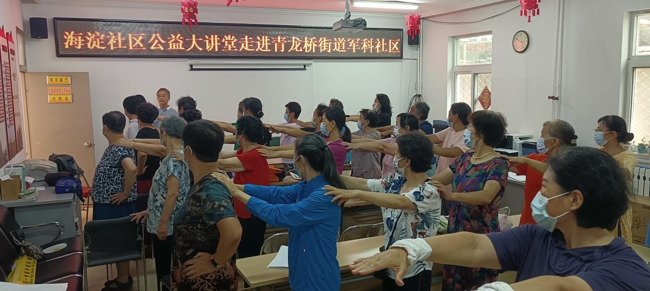 2022年7月18日28日上午,海淀社区公益大讲堂走进青龙桥街道遗光寺社区,开展了《从头到脚讲运动健康》《运动健康阻击新冠肺炎》两场讲座。