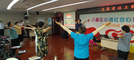 2022年8月10日至11日,海淀社区公益大讲堂走进八里庄街道,为16个社区养老互助社的志愿者开展了“志愿者运动健康”系列讲座。