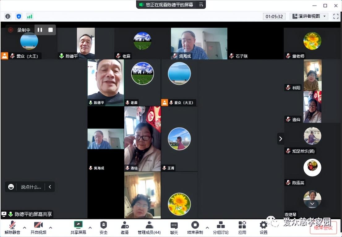 陈连英队长感悟:没有爱的信念,凝聚这么多人是不可能的,还有大家的坚守,才能走到今天,充分发挥队员的主观能动性,很重要,随着慢慢了解,就知道每个人的特长。发挥老大姐们的作用,她们的理念:帮助他人,快乐自己!她们积极参加,对其他队员也都是鼓励。线上系统使用,老大姐们遇到困难,就发挥年轻队员的作用,特别有耐心。大家爱学习,积极学习,怕掉队,特别好!大家把特长发挥出来,支持队长工作,让我们也特别省心。感恩陈老师的主持以及每个人的精彩发言,收获满满。