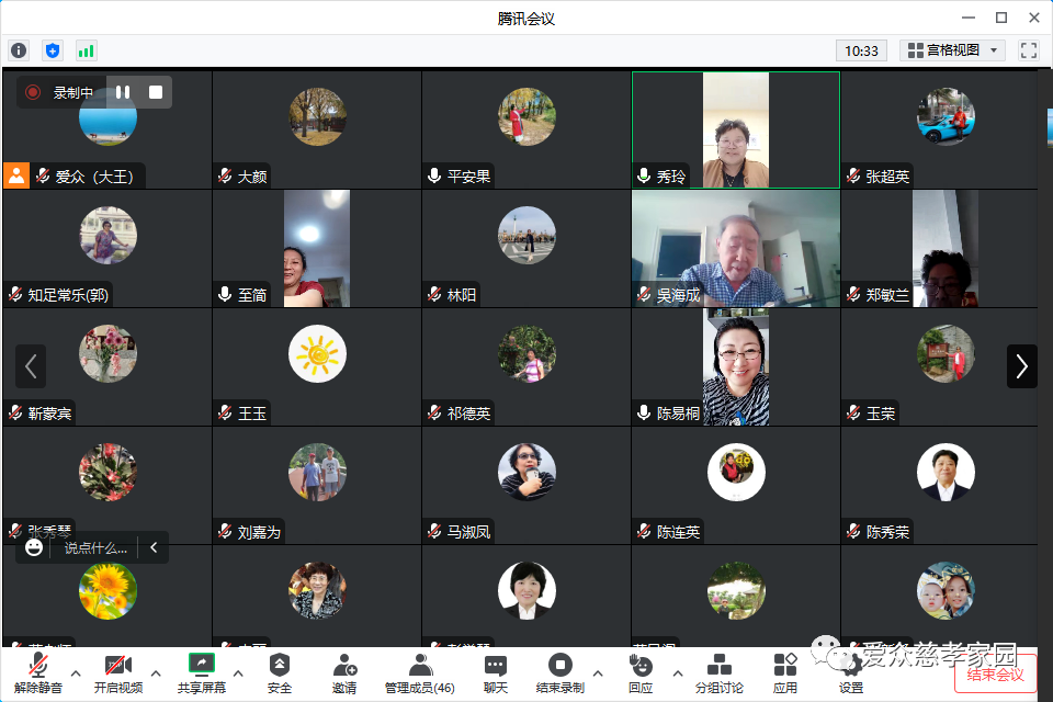 林国英队长感悟:各位老师好,今天下午2点线上线下的志愿者学习了《生命的重建》,线上线下的志愿者们都积极的参与,谈自己的学习体会,在王菁老师,麻老师,易桐老师的启发下,明白了很多道理,什么是幸福,什么是对与错,有了认识,受益匪浅!谢谢今天参加学习的所有老师们,志愿者家人们!不忘初心,继续努力,跟随爱众一路前行!