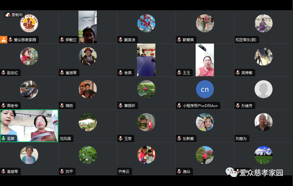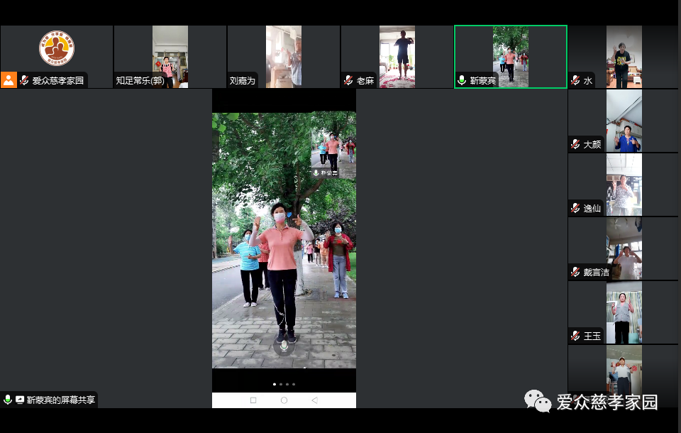 爱众慈孝家园麻国华老师感言:感谢本周陈连英、靳蒙宾队长们及志愿者们的带操,社区展示风采,线上线下共同健身健康,探索互助养老新模式。