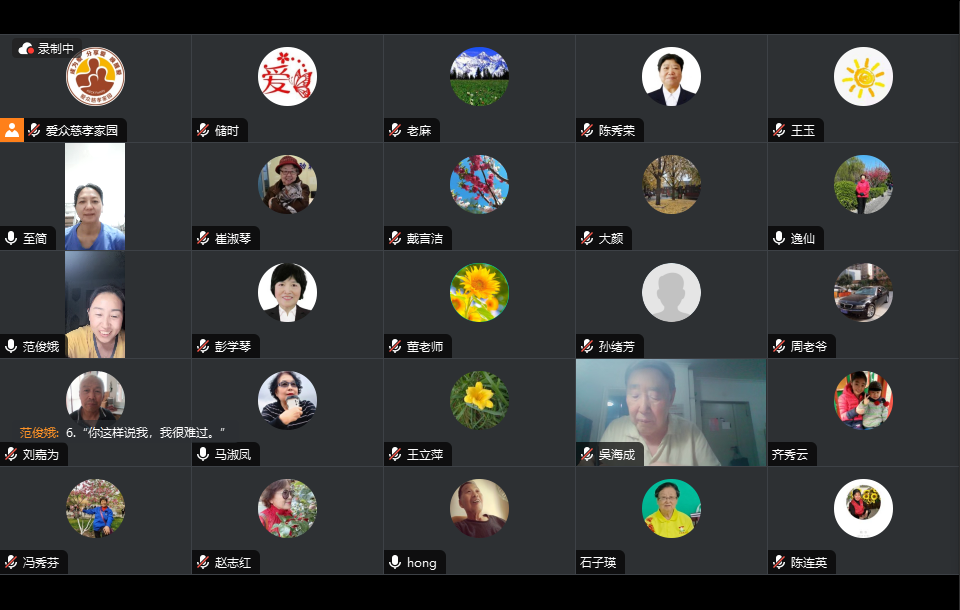 爱众慈孝家园麻国华老师感悟:爱众读书会继续学习《妙语讲病,起死回生》一书。书中讲到: 疾病生于喜怒,生于饮食,生于居处。在讨论中我们发现,面对家人,身边的亲人越难以管理情绪,怨、恨、恼、怒、烦会导致情绪失控并疾病缠身。我们总是被一类事件勾起情绪,所谓正确的道理大家都知道,但就是做不到。如何才能够做好呢?经过讨论,大家发现爱众的公益实践,传统文化学习及心理辅导,使我们向内看,觉察感觉和想法,开放心智模式,跳出以往的思维怪圈,才能不再被外界牵制情绪,成为自己幸福生活的主人。