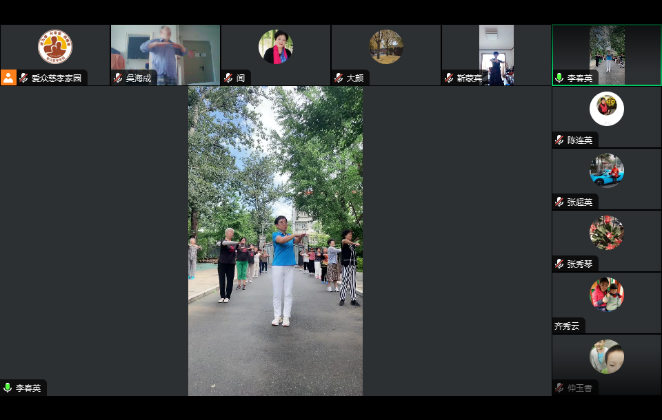 “爱众志愿者之家”第三十二周活动在东城区龙潭街道龙北社区陈连英队长、李春英队长及志愿者的的带领下,8月21日--25日持续开展线上线下健身锻炼、线上读书会及爱众讲座系列活动。