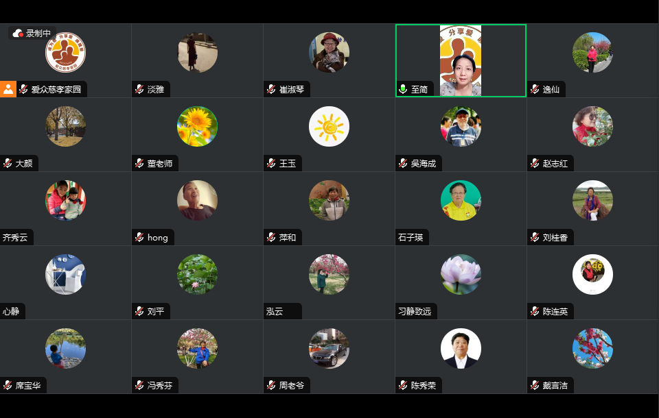 在线上读书日学习时,不论是在家还是在现场,大家都能认真听,积极发言,用自己生活中的事例,体会书中精神,讲述对家庭伦礼及夫妻关系的理解,及做为志愿者在传承中华传统文化的同时,也要不断修正自己,正是"父爱则母静,母静则子安,子安则家和,家和万事兴"。让我们继续努力完成好下周工作。谢谢大家!