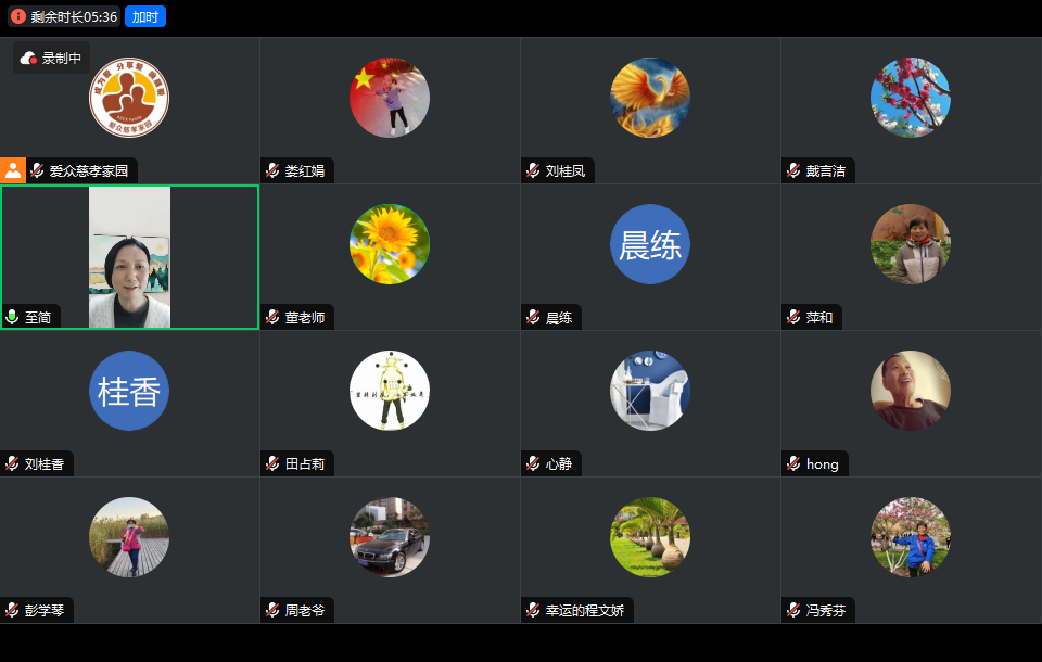 志愿者刘桂凤感悟:爱众的老师和志愿者们,大家晚上好!谢谢大家的分享!我的感悟是:做人要多做善事,内心要有好的念头,益于他人就能把事做好,内心期待什么就能做成什么,最后实现梦想。还有爱众志愿者和老师们及所有的队长都是出于内心,善心,爱心为老服务,一走就十年,了不起!新的一年又开始了,继续努力,加油把身体锻炼得棒棒的!感谢大家的陪伴!