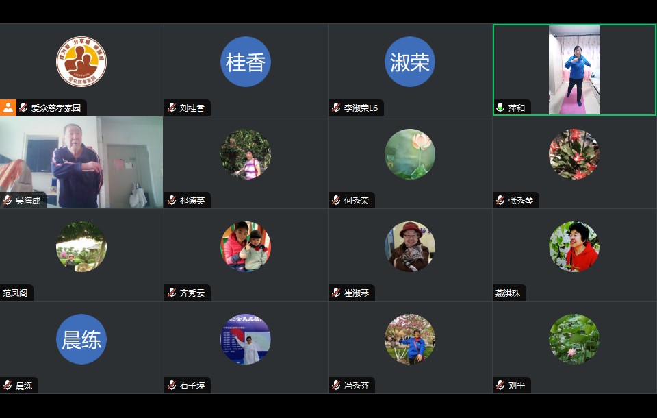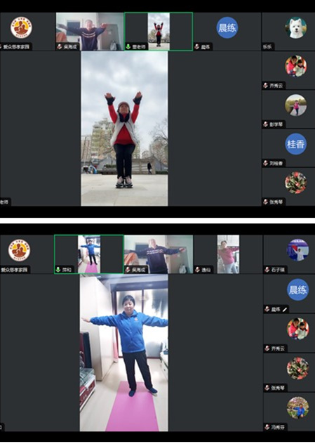 “爱众志愿者之家”第九周活动继续在东城区崇文门街道国中社区队长董淑琴、丰台区卢沟桥街道大井社区高玉萍队长及志愿者的带领下,2024年4月1日--3日持续开展线上线下健身锻炼、线上读书会及爱众讲座系列活动。