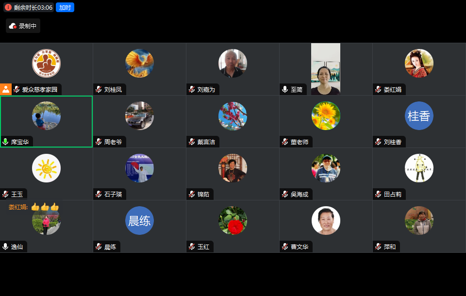 志愿者刘桂凤感悟:老师,志愿者们,晚上好!谢谢大家的分享!通过学习,收获满满。人只有活在当下,才是最正确的人生态度。只有活在当下,能量是最高的,天人合一。92%的担心不会发生,担心不如睡觉,一觉醒来啥都清晰了。谢谢老师的讲课!谢谢大家的陪伴!
