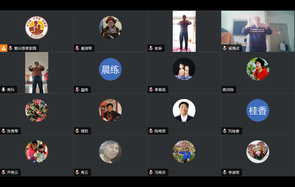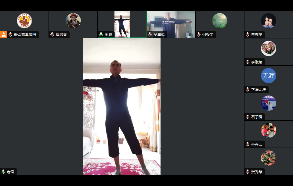 “爱众志愿者之家”第十一周活动继续在北京爱众慈孝家园麻国华老师及志愿者的带领下,2024年4月15日--19日持续开展线上线下健身锻炼、线上读书会及爱众讲座系列活动。