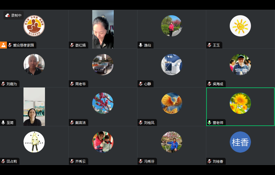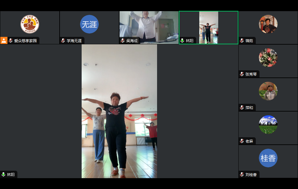 “爱众志愿者之家”第十五周活动继续在东城区东直门街道新中街社区林国英队长、林秀玲队长及志愿者的带领下,2024年5月13日--17日持续开展线上线下健身锻炼、线上读书会及爱众讲座系列活动。