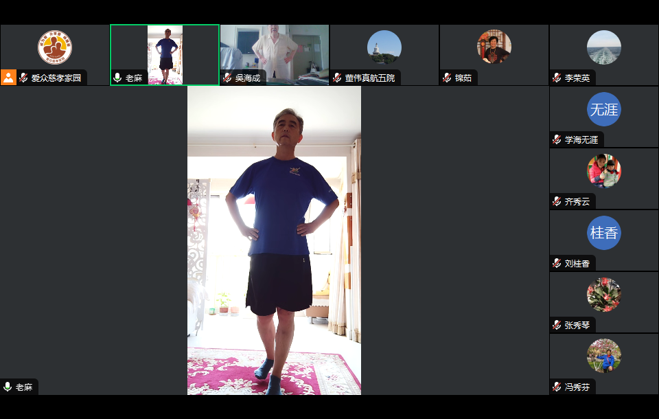 “爱众志愿者之家”第二十三周活动继续在北京爱众慈孝家园麻国华老师及志愿者的带领下,2024年7月8日--12日持续开展线上线下健身锻炼、线上读书会及爱众讲座系列活动。
