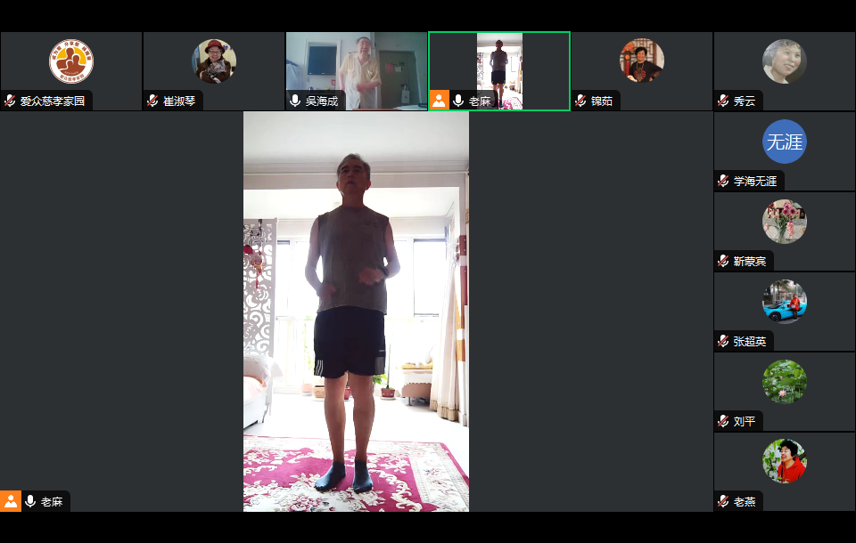 “爱众志愿者之家”第二十五周活动继续在北京爱众慈孝家园麻国华老师及志愿者的带领下,2024年7月22日--26日持续开展线上线下健身锻炼、线上读书会及爱众讲座系列活动。
