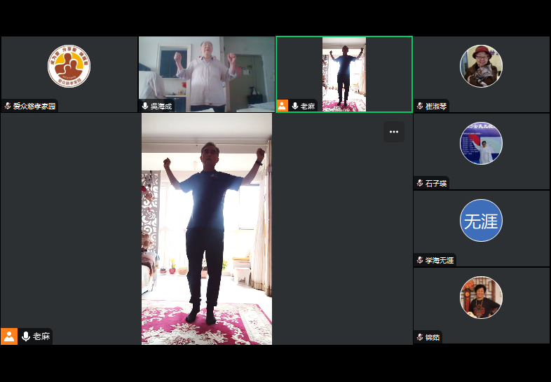“爱众志愿者之家”第三十六周活动继续在北京爱众慈孝家园麻国华老师及志愿者的带领下,2024年10月14日--18日持续开展线上线下健身锻炼、线上读书会活动及爱众讲座系列活动。