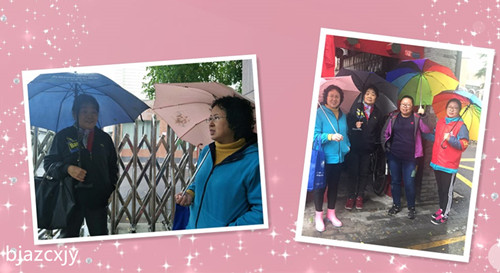细雨蒙蒙的清晨,志愿者们早早的来到赵大妈家,发现老人还没起床。就打着伞在门口耐心的等候着。