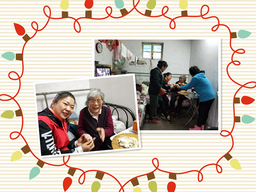 志愿者朱莲华感悟:老幼共享同激励,今天是全中国人民的大喜日子,党的第十九次代表大会召开了,身为首都的一名居民,心情是即兴奋又激动。社区爱老敬老的志愿者王建华、朱莲华以实际行动,去到社区的高龄老人家陪包饺子,庆祝党的十九大的召开。 将中华孝道文化深入而具体的落到实处,将爱老服务工作做到具体细微,让社区老人感受到国家、社会的关怀。十九大报告描绘出社会蓝图,正是由社区基层方方面面无数个这样小而细的工作共同绘制。今后我们团队会依然按《报告》中的发展蓝图,去做好为老的每件细微的小事,为实现“和谐社区一家亲的梦想努力。