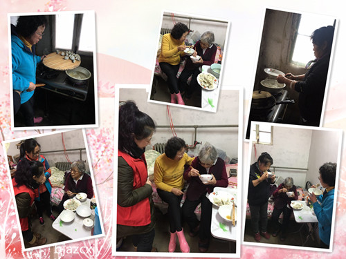 接近中午时分,志愿者、社干和老人一起动手包饺子。边包边讨论谁谁的好,彼此欣赏着各自的手艺。当志愿者将第一锅饺子送到老人嘴边时,幸福地笑了。老人直招呼志愿者们和社干一定要多吃、吃饱。这样的场面烙在了每个人的心里,感动着彼此。老人幸福的笑容和真挚地感谢让志愿者收获颇多。“赠人玫瑰,手留余香”、“服务他人,快乐自己”,这样的爱老故事只不过社区平常发生缩影。“