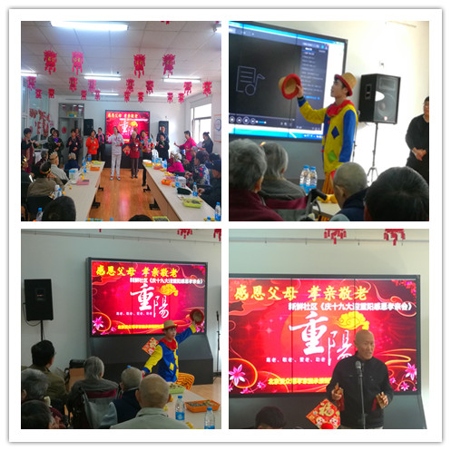 社区党员张丽娜表演的独舞《紫竹调》、社区居民田巧兰表演的《孝敬父母》、 社区党员刘增利的《快板》,展现了新鲜社区居民的精神状态的同时,为活动现场增添了一份喜庆!由北京爱众慈孝家园特邀的印象北京青年演员表演的《变脸》和《杂耍》,更是赢得了阵阵掌声 !