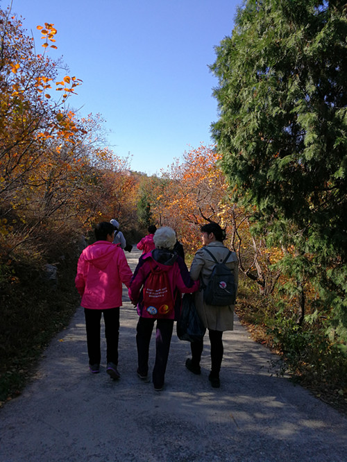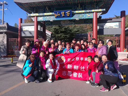 2017年10月30日,新鲜社区爱众慈孝家园爱老服务队的志愿者在社区党委居委会、及北京爱众慈孝家园的大力支持下,36名志愿者参加了“百望山红色郊游”的活动。通过寻访革命遗迹,聆听革命故事,感受革命情怀,学习革命精神,接受爱国主义教育,树立正确的世界观、人生观、价值观,坚定服务社会、服务社区的志愿精神信念。