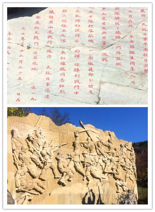 共同找寻当年的历史,了解纪念壁上的内容,瞻仰烈士雕塑,才知珍惜!今朝的红苑硕果是先烈们“用骨肉碰钝了刺刀,鲜血浇灭了烟焰”换来!这些鲜活的革命故事,使得在这里赏红叶又多了一层内涵!