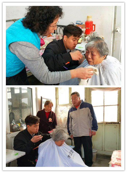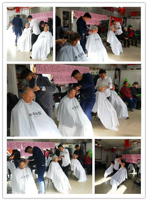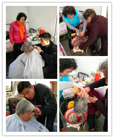 志愿者朱莲华感言:今天木北造型的理发师们又一次来礼士社区为居民理发,虽然寒冷又大风,可理发师们还是去赵大妈家为她老人家理发,在理发的过程中,大妈流着眼泪连声说着谢谢!谢谢理发师们!谢谢志愿者总惦记着她!听着大妈暖暖的话,我们也格外高兴和愉快!我非常感谢爱众慈孝家园给我们为老人服务的机会!让我们在服务老人的过程中滋养自己!