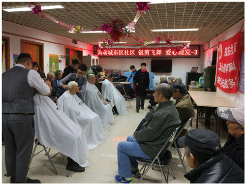天气寒冷,挡不住人间的暖流!这个冬天,因为有你而温暖! 2017年11月8日,国瑞城东区社区再次联手北京爱众慈孝家园、木北造型崇文新世界店,对社区志愿者、社区行动不便、高龄老人等开展了“银剪飞舞,爱心理发”的便民服务。通过一次次的理发活动,不仅弘扬中华民族尊老爱老的传统美德,还营造了社区尊老、敬老、爱老的浓厚氛围。居民们深刻地感受到党、社区的关怀及社会大家庭的温暖,纷纷表示生活越来越好!在本次活动中,共计理发60人次。
