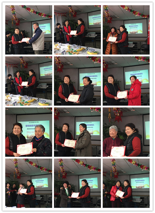 于书记为爱老志愿者颁发荣誉证书,肯定志愿者们对社区的付出和爱老服务中的贡献!