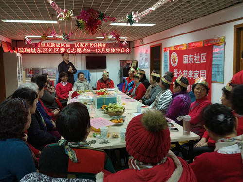 12月15日上午,国瑞城东城社区其乐融融,暖意洋洋。在社区党委、居委会和爱众慈孝家园的大力支持下,社区志愿者们齐聚一堂,为社区的9位生日在9-12月份的志愿者们,举行了集体庆生会。这次集体生日会,不仅能为老年人们提供精神上的慰藉,让他们感受到社区大家庭的温暖,还能构建更加和谐的邻里关系,增强社区凝聚力。
