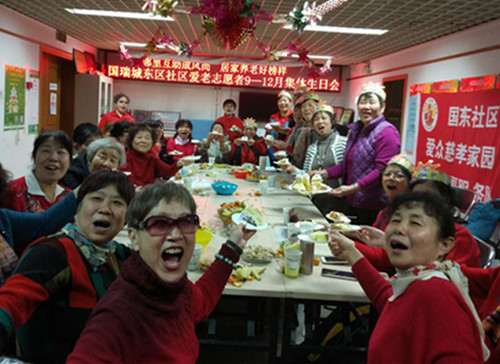 志愿者们一起端着蛋糕干杯!纷纷表达出了对寿星们美好祝愿和自己的幸福愉悦之情。与在家里过生日相比,集体生日更加热闹,让人感受到社区大家庭的温暖。