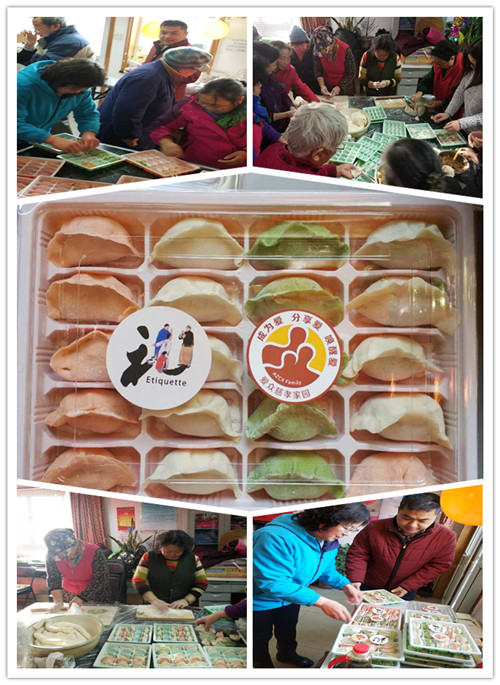 冬至,俗称“冬节”,是中国农历中一个重要的节气。冬至吃饺子,对北方人来说,也是一种传统文化。2017年12月21日,爱众慈孝家园的志愿者在礼士社区党委、居委会的大力支持下,开展了《冬至暖心饺子》活动。通过活动,为社区的老人送去志愿者亲手包的饺子,同时也送去了社会、社区对老人们的关爱!
