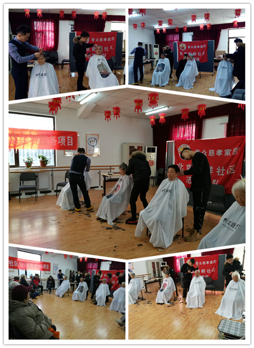 2017年12月26日,北京爱众慈孝家园在新鲜社区党居、居委会的大力支持下,开展了第4次“银剪飞舞,爱心理发”的活动,为社区80岁以上的老人和党员服务!在此,向优秀的合作伙伴之一木北造型(新世界店),表示衷心的感谢!通过活动,继承与弘扬中华民族尊老爱老的传统美德,营造全社区尊老、敬老、爱老的浓厚氛围;同时,向中国共产党员表示一份敬意!