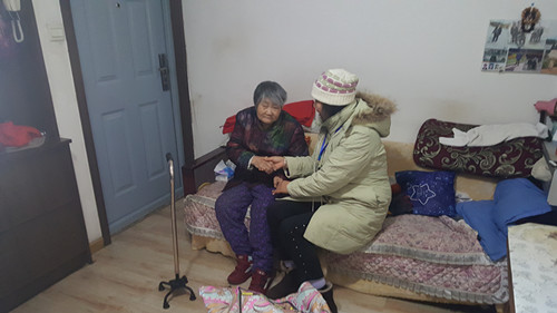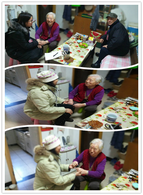 志愿者果凤苓感言:今天是2018年1月份第一次入户慰问,我和高春莲,戴小丽去了张某某老人家里,老人见到我们非常高兴,和我们拉家常,老人身体基本健康,性格开朗,思维敏捷,经常看报纸,看朝阳区小报,观注社区养老事业,她有一个自闲症的儿子,天气暖和了想和大家锻炼身体,互相沟通,我们很感动,也很欢迎。