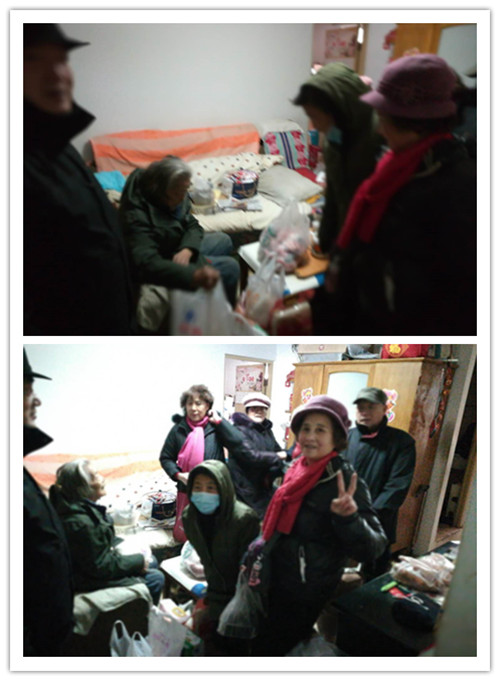 志愿者李秀芬感言:不畏严寒,献爱心 。新年伊始,新鲜爱众的三位管委会委员带领着当月的两位队长还有队员郭晓虎、刘艳霞、李铁炼冒着凛冽的寒风,帮九十多岁的老人王哲英购买了600元的米面油肉等食品并送往家中。老人非常感激,连连道谢:“谢谢!谢谢!” 当下虽是三九严寒,但挡不住我们爱老敬老为老的一颗爱心。这八位家人上午入户到家己是中午十二点了,他们简单的吃口饭就又出来为老人购物送往家中,尤其是果凤苓、刘艳霞、郭晓虎在给老人送物后,又急赶去学校接孩子。这是什么精神?这就无私奉献的写照,是我们以实际行动谱写着爱的诗篇,这就是爱众的精神! 我们要不忘初心,牢记史命,成为爱、唤醒爱、分享爱,让大爱普照到每一位老人身上,使他们的晚年更幸福,更安康! 天寒地冻人心暖,上午入户下午购物,小虎拉着购物车,建兰,艳霞自行车前,后掛满物品,每个人手上拎着大包小包,送至王哲英老人家中,老人喜欢,我们快乐!