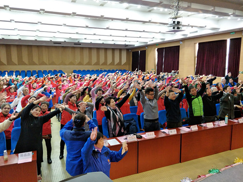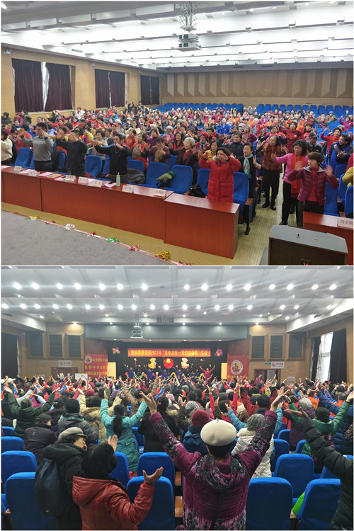 开场依旧是爱众特色节目——健身拍打,300人互动的场面既壮观,又充满了欢乐,大家的笑容照亮了整个房间!随后爱众理事长麻国华老师做了2017年工作总结,并展望了充满希望的2018年,台下用雷鸣般的掌声,共同祈愿爱众慈孝家园的互助式居家养老事业的蓬勃发展!