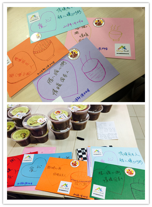孙书记用心创意,志愿者们亲手制作,一张张别致的贺卡和暖心粥一起送到了老人们手中!