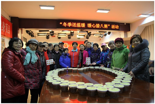 2018年1月24日,是中国的腊八节,这一天,在北方有喝腊八粥的习俗。爱众慈孝家园团队在各社区党委、居委会的大力支持下,携手雨花斋,共同开展了“情暖腊八粥”的活动。带有不同的创新色彩的各社区腊八节爱老活动的开展,丰富了社区生活,发扬了传统文化。志愿者们在本次活动中发挥了积极作用,让更多人感受到生活在社会大家庭的温暖!