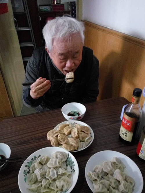 这位独居老人吃上了礼士社区志愿者包的牛肉馅饺子,好香呀!