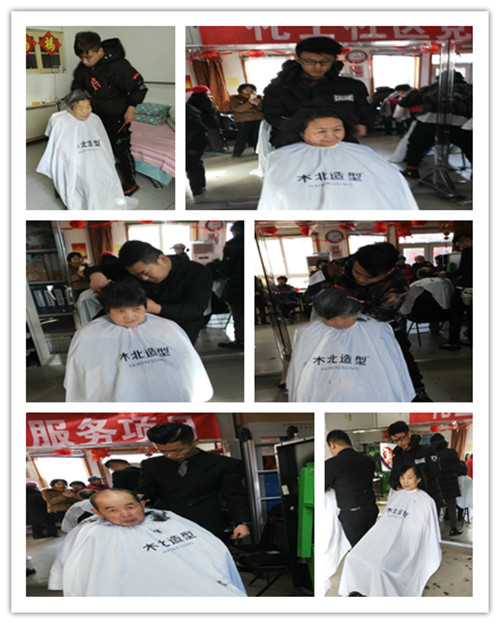 志愿者小造型师与居民打成一片,双方配合默契,有说有笑,在和谐中度过快乐时光!