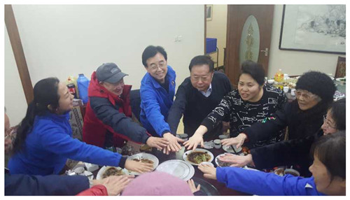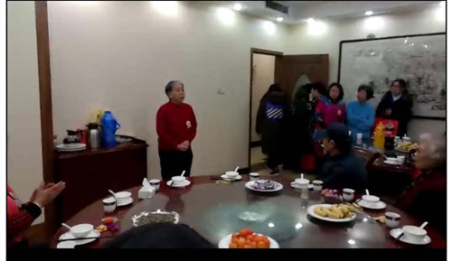 社区于书记问候老人新春快乐,并对北京市财干院长期的大力支持表示感谢!