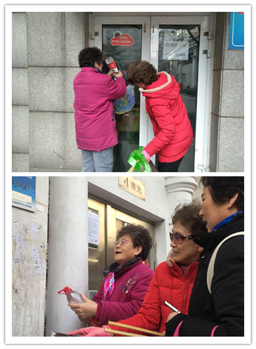 志愿者们充分发扬不怕脏、不怕累的志愿服务精神,认真清洗张贴在玻璃和墙壁上的小广告。