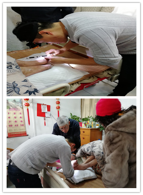 病床上的老人,看到志愿者犹如见了到亲人,同时感受修脚师傅精湛的手法,幸福指数在迅速上升!
