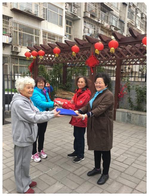 志愿者刘艳霞感言:今天上午天气很冷,风也很大,大家很早来到居委会参加锻炼。龙其是龙姨春节前得了带状疱疹,至今还未完全恢复。因为我以前得过这病,神精疼。自己无法控制的。但龙姨能坚持来锻炼我们为龙姨的精神点赞。再有三位大哥,陈德平大哥、郭小虎大哥、李铁炼大哥、二队队长侯右兰大,都为我们做出了表帅。给您们点赞!向您们学习!还有刘玲云妹妹、趟景云为我们拍照,辛苦你们了!三月由于果姐身体不适,最近还在看病,调养当中。我本人把这重任担当起来,尤其是高老师、穆姐对我的帮助,还有我们的志愿者都支持我的工作。我谢谢大家了!有不足之处,望大家提出宝贵意见。四月份队长从明日起,是付宏大姐、刘玲云妹妹。我希望大家要支持她们的工作,为搞好新鲜社区为老服务贡献我们的全部力量。今天上午最高兴的一件事,就是我们参加了新鲜社区为老服务志愿者二队的授旗仪式。高姐、侯姐、穆姐分别做了感言。授旗仪式结束后,我们一队和二队姐妹欢歌跳舞,场面非常热闹。我们为一队和二队的大哥大姐及妹妹们点赞!加油!我们都争取活到120岁!加油!