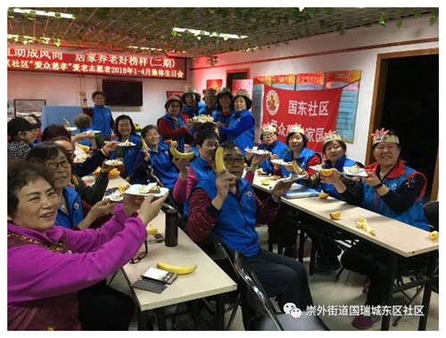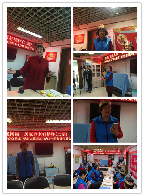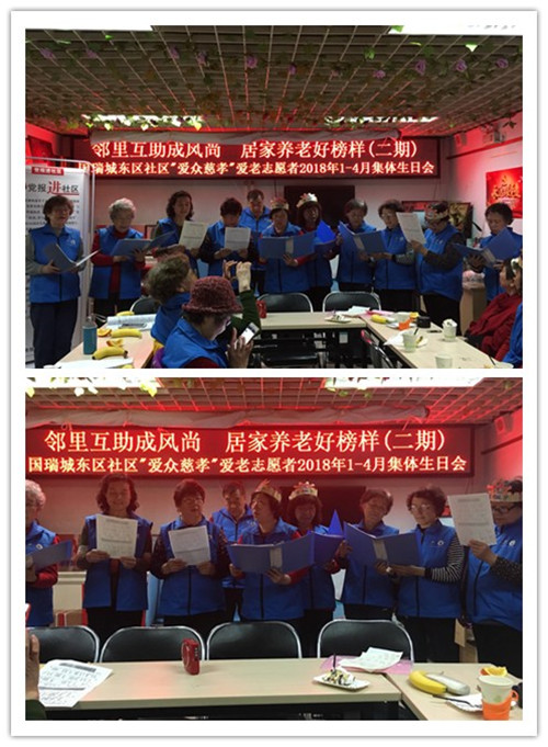 2018年4月16日,北京爱众慈孝家园承接国瑞城东区社区党组织服务群众经费项目——邻里互助成风尚 居家养老好榜样(二期)项目,为社区1—4月过生日的志愿者举行了集体庆生会! 这次生日会,激发了社区志愿者的服务热情,增强团队归属感,还构建了彼此之间的关系。社区志愿者共30余人参加了此次活动。
