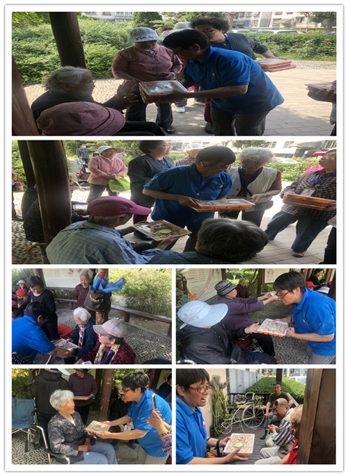 志愿者果凤苓感言:今天新鲜社区志愿者们在社区领导大力支持下,在爱众家园老师的倡导下,为社区二队快乐健身的老人们送去爱心饺子,从照片上可以看出老人们喜笑颜开,非常高兴、快乐、又健身,还有香香的饺子吃,真是太幸福了!为准备今天的活动,从昨天几位队长就采买,调馅,和面具体分工责任到每个人负责。今早志愿者们从家带来所需工具,九点来到社区居委会活动室,擀面皮,包饺子,装合子,再由几位管委会的姐妹,托着满满的爱心饺子送到二队场地的老人手里,我们在后方的志愿者继续工作着,大家谈笑风生,小关和小虎不由自主的唱起歌来,此次活动开心、快乐、热闹、爱心满满!非常感谢社区领导和爱众老师们!