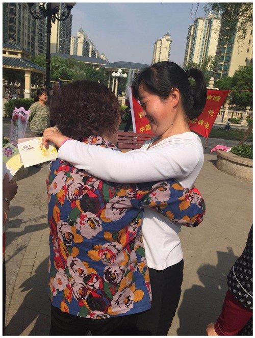 杨翠玲大姐和郝瑞华大姐不愧是爱众人,把自己的一朵康乃馨毫不犹豫地送给了别人,郝瑞华大姐送出一朵,却收到了女儿一大束有着满满的爱、更加美丽的花儿,她绽放的幸福笑容和母女俩浓浓的情,感染着每一个人。