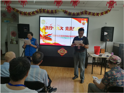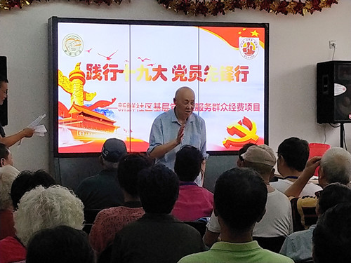 2018年5月15日,在新鲜社区党委联手北京爱众慈孝家园、北京联合大学城市智慧学院学生党总支,共同举办一场“践行十九大 党员先锋行”的活动。活动分为座谈、爱老服务及入户慰问三个环节进行,得到了社区老党员、居民及各方人士的一致好评,特别是大家对这次创新的党课形式予以了高度肯定。