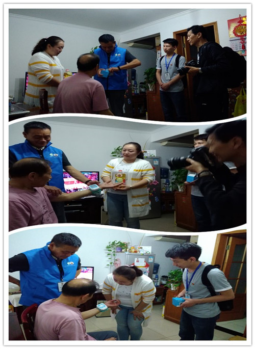 座谈会结束后,开始了入户服务。大家共同慰问社区里高龄、孤寡、空巢等老人,给他们送去社区党委通过基层党组织服务群众经费项目为老人购买的腕式血压仪,除了教会老人使用及注意事项外,还要现场为老人提供测量血压的服务。