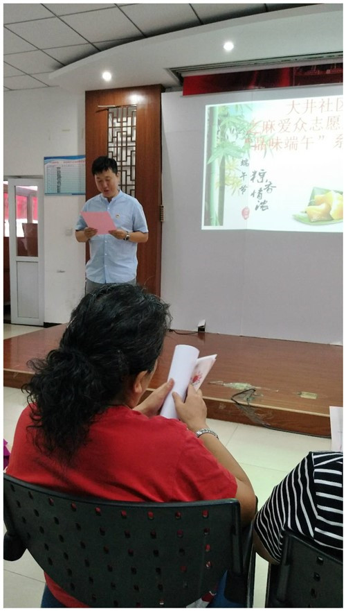 社区主任刘子意提前祝大家端午安康,在这个喜庆的日子里,和大家一起见证之麻爱众志愿服务队的建立和发展,代表两委一站向此次积极响应并热情参加的志愿者们致以最深的敬意。