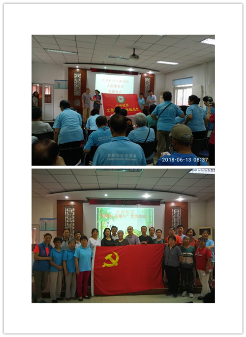 由社区主任和书记授旗,爱众慈孝家园专员厉玉双和志愿者寇敏学接旗,鲜红的旗帜、热情的心,旗帜就是方向,旗帜就是灵魂,这支队伍一定会发挥不一样的力量。